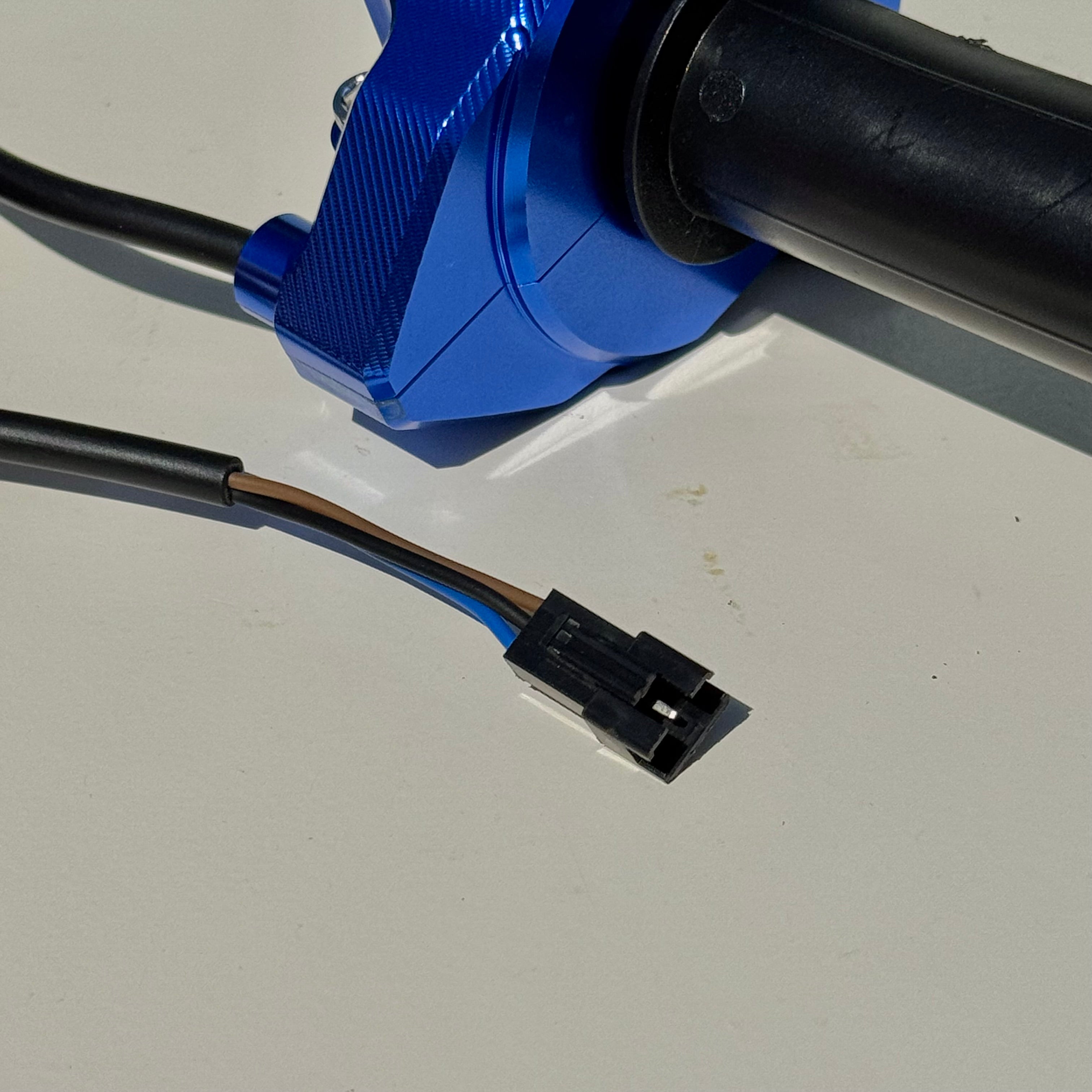 The 2FAST CNC Throttle (Plug & Play) upgrades your ride with a quarter-turn design that delivers faster response and more control than standard half-twist throttles. Built from CNC-machined alloy, it has a solid, premium feel in the hand and is engineered to last. A smooth rotation and snappy return spring give you consistent throttle action every time you ride, while the anodized finish with engraved 2FAST branding makes it stand out and resist wear. Installation is quick and simple with a plug & play connector. No wiring, no hassle, just connect and ride.