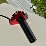 The 2FAST CNC Throttle (Plug & Play) upgrades your ride with a quarter-turn design that delivers faster response and more control than standard half-twist throttles. Built from CNC-machined alloy, it has a solid, premium feel in the hand and is engineered to last. A smooth rotation and snappy return spring give you consistent throttle action every time you ride, while the anodized finish with engraved 2FAST branding makes it stand out and resist wear. Installation is quick and simple with a plug & play connector. No wiring, no hassle, just connect and ride.
